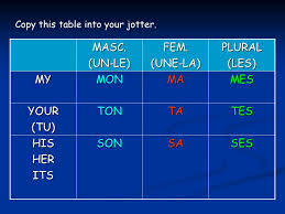 Le français 7a & 7b - Review using ta, ton tes (your) and c'est (it is). There is also a Duolingo assignment on adjectives. You will have an email from Duolingo that you have an assignment.